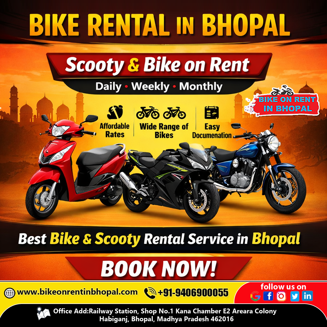 Traveling from Bhopal to Bhind is a journey filled with scenic beauty, cultural experiences, and the freedom to explore the road at your own pace. If you are planning this route and looking for a reliable and affordable mode of transport, Sun Travels Bhopal is the perfect choice. We provide bike and scooty on rent in Bhopal to Bhind, offering a well-maintained fleet, transparent pricing, and a hassle-free booking process. Whether you are a student, a traveler, a working professional, or an adventure enthusiast, renting a bike or scooty from Sun Travels Bhopal ensures you have a comfortable and safe journey. With our extensive experience in the travel industry, we have designed our rental services to meet the needs of every customer.