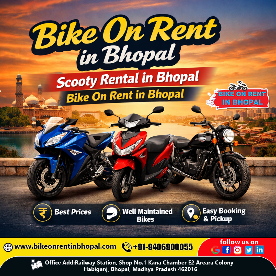 We deliver bikes and scooties to hotels across Bhopal. Whether you are staying near the lake, in the city center, or in a hotel on the outskirts, we will deliver the vehicle to your doorstep.
