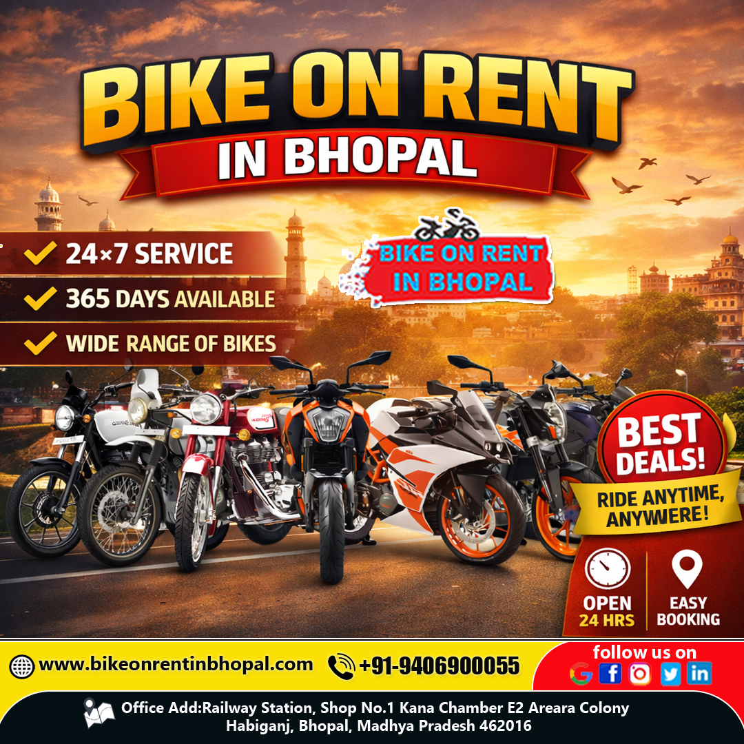 • Online Booking: Visit the Sun Travels website (www.bikeonrentinbhopal.com) or app, select your bike, rental duration, and fill in the basic details.